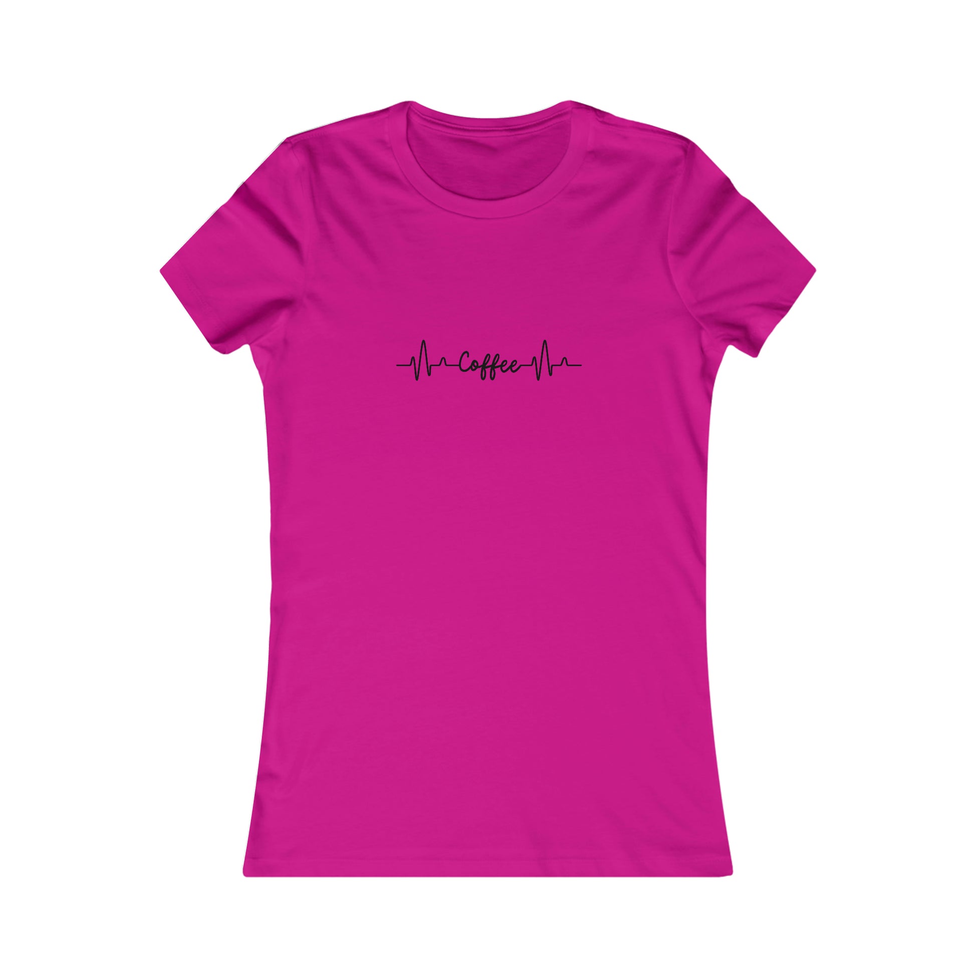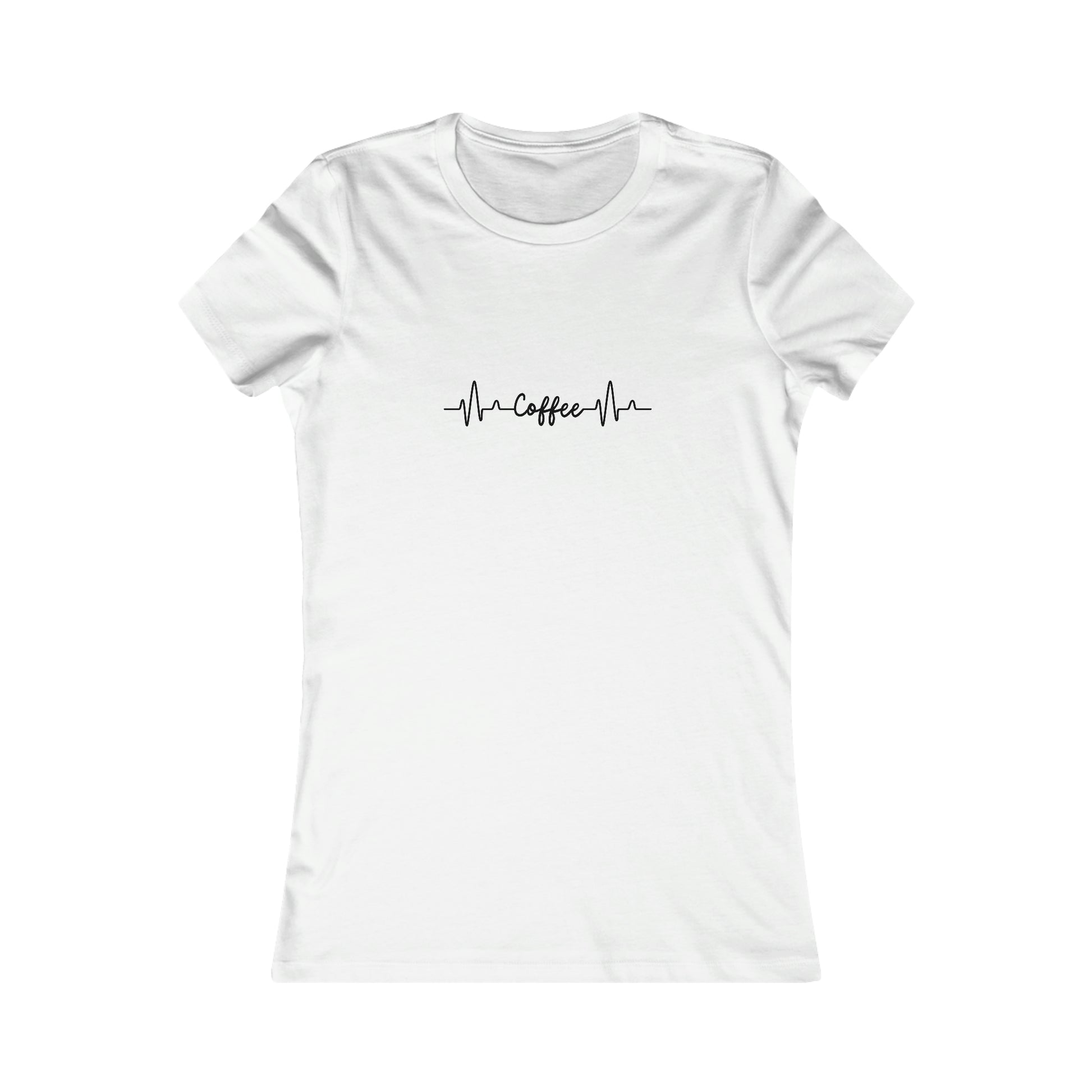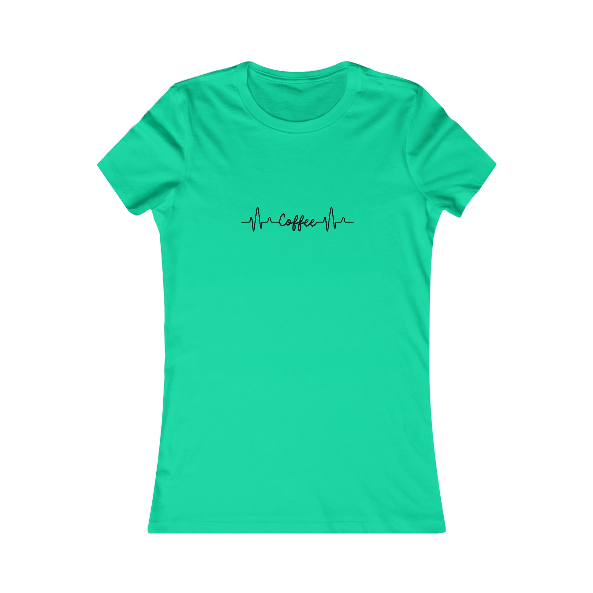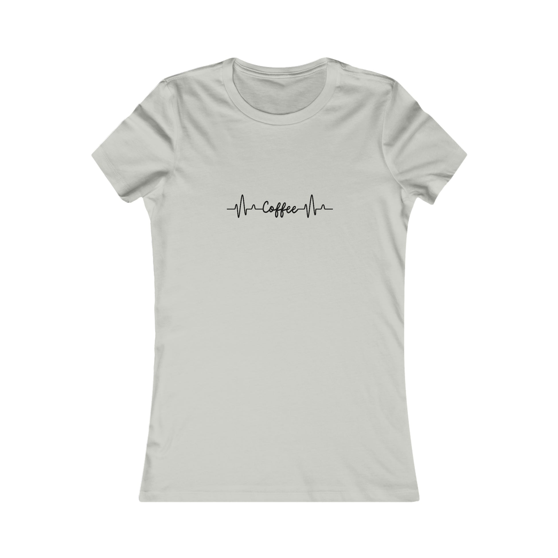 But first...coffee heartbeat cute tee. Made to feel like a well-loved favorite, these tees come with a feminine fit that is as stylish as it is comfy. The ribbed knitting makes the collar highly elastic, while the twill tape on the shoulder seams stabilizes the back of the shirt and prevents stretching.