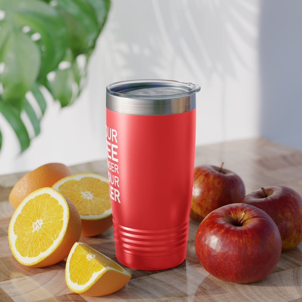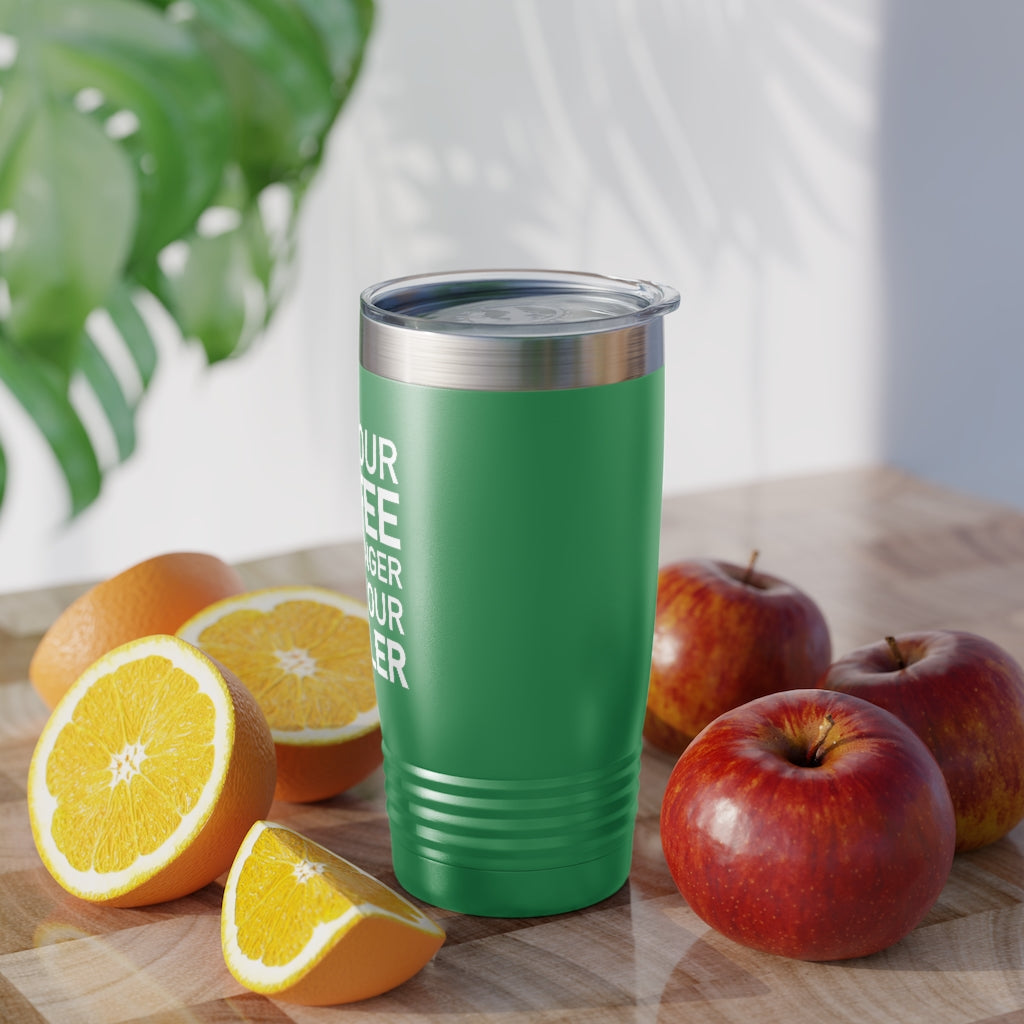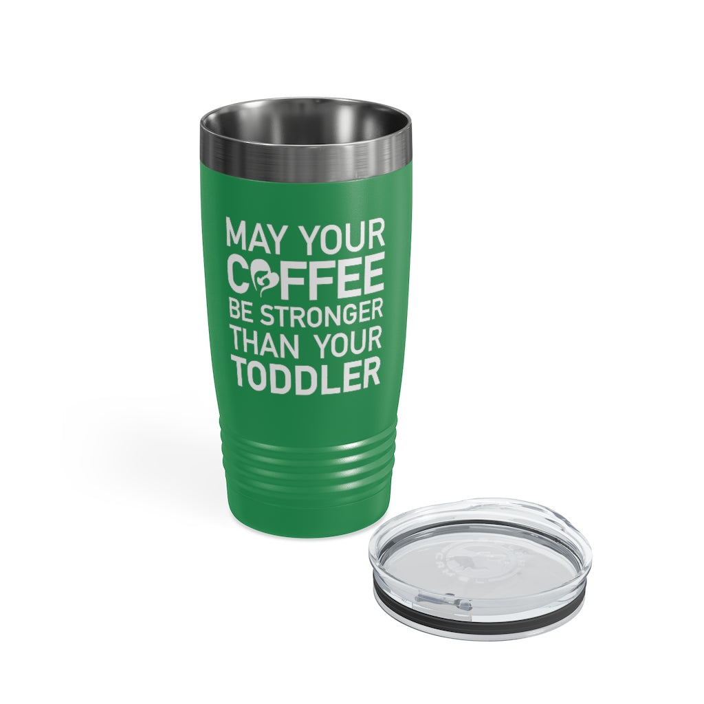 This 20oz tumbler makes a perfect gift for any mom on your list. It is available in red, green, and gray, and is made of durable stainless steel. It has a push-on clear plastic lid. It will keep your hot drinks warm and cold drinks cold, so whether you're sipping coffee or enjoying an adult beverage, this mug will be perfect. May your coffee be stronger than your toddler.