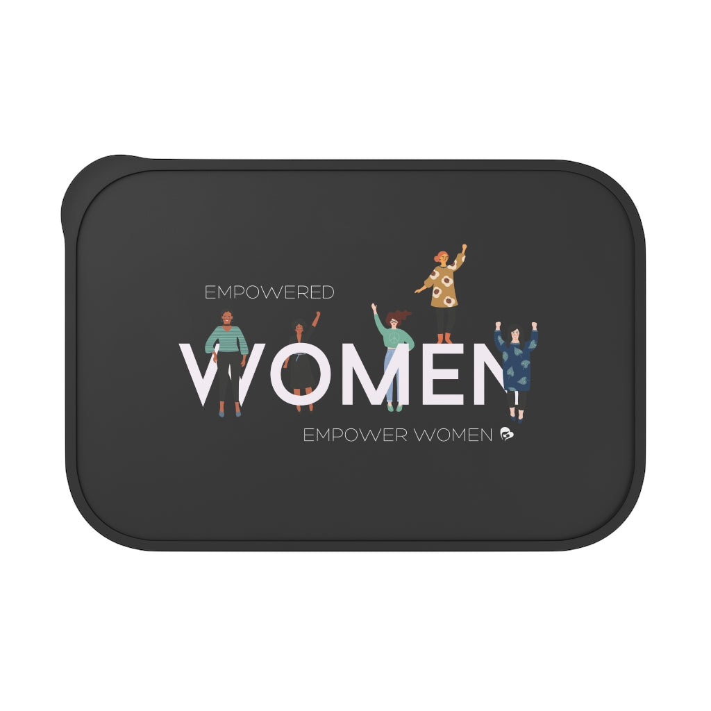 This environmentally friendly lunch box is made of bioplastic from plant starches. The bento box is 7.4"x5.1"x2.3", which should hold all your lunch and snack goodies. It also has a rubber band to keep all the contents safe. Empowered women empower women, and you'll be empowering yourself for a very special lunch.
