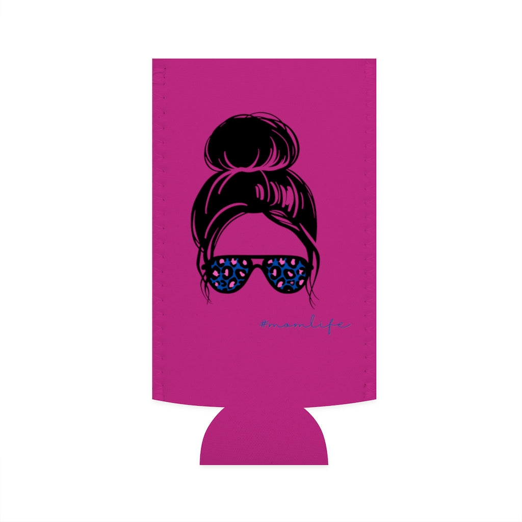 Every mom needs to keep their mama coke cold with a slim soda and beer can koozie! It is perfect for all those 12 oz slim cans, so grab a seltzer and head to the pool. Made with neoprene material and has a black interior. The exterior is pink and features the messy bun #momlife graphic with purple and pink leopard glasses. This is a must-have gift for any summer mother!