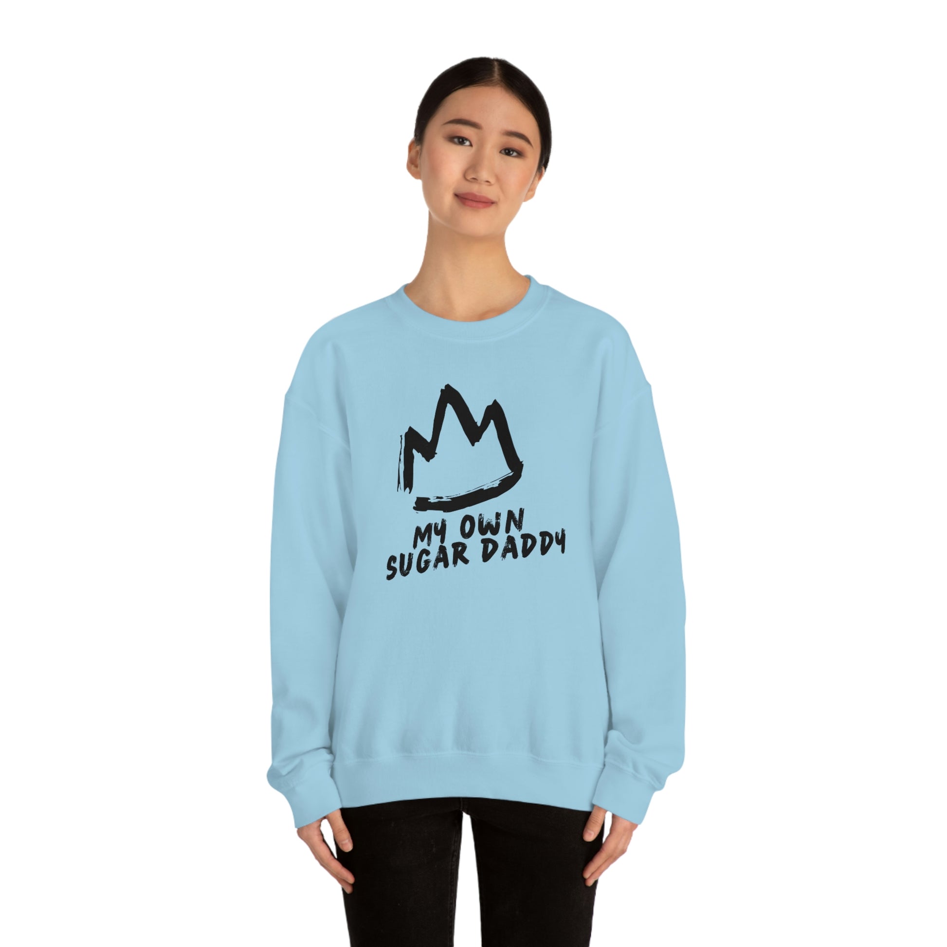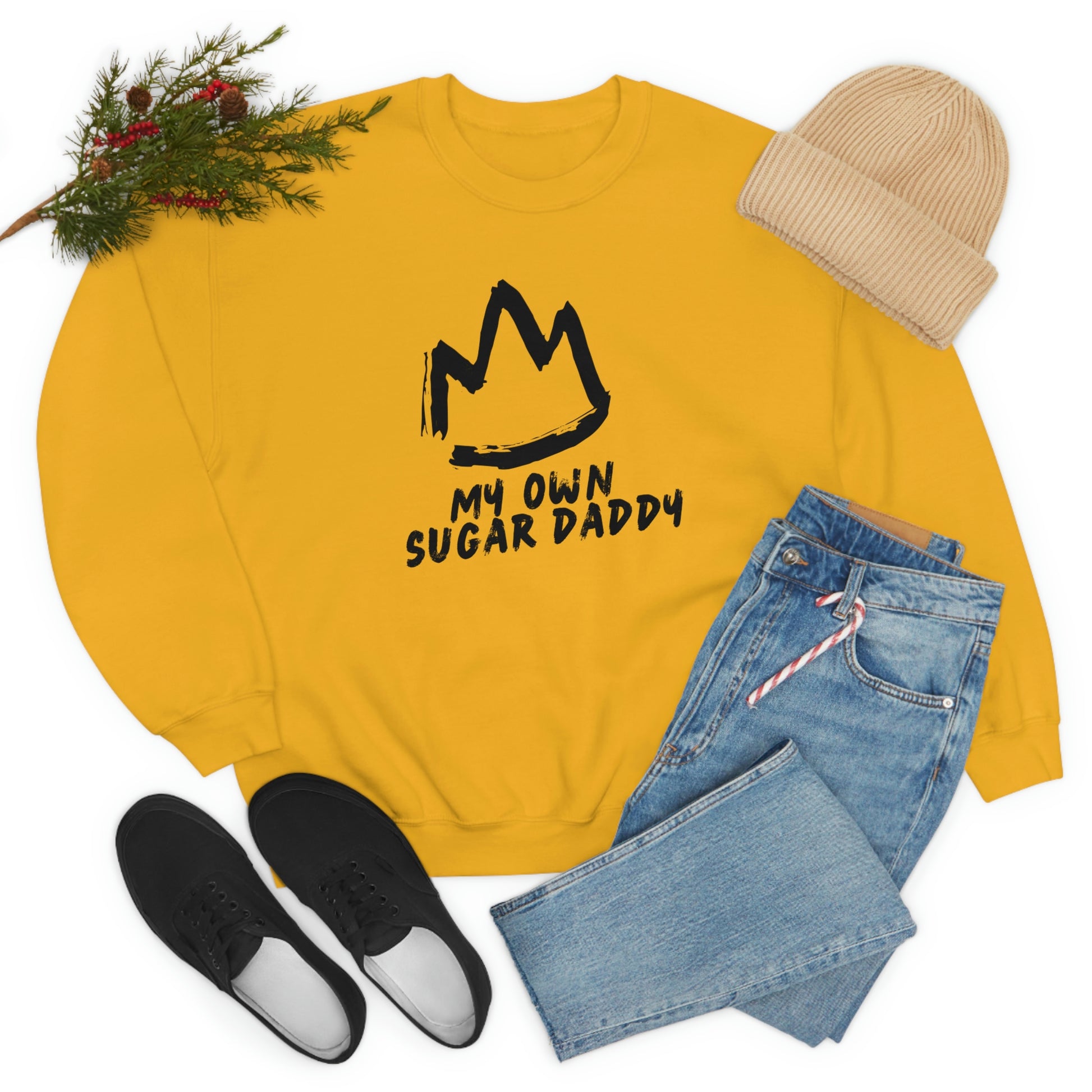 My Own Sugar Daddy Sweatshirt. Cozy & hilarious! Ideal for any situation, a unisex heavy blend crewneck sweatshirt is pure comfort. These garments are made from polyester and cotton. This combination helps designs come out looking fresh and beautiful. The collar is ribbed knit, so it retains its shape even after washing. There are no itchy side seams on these sweaters.
