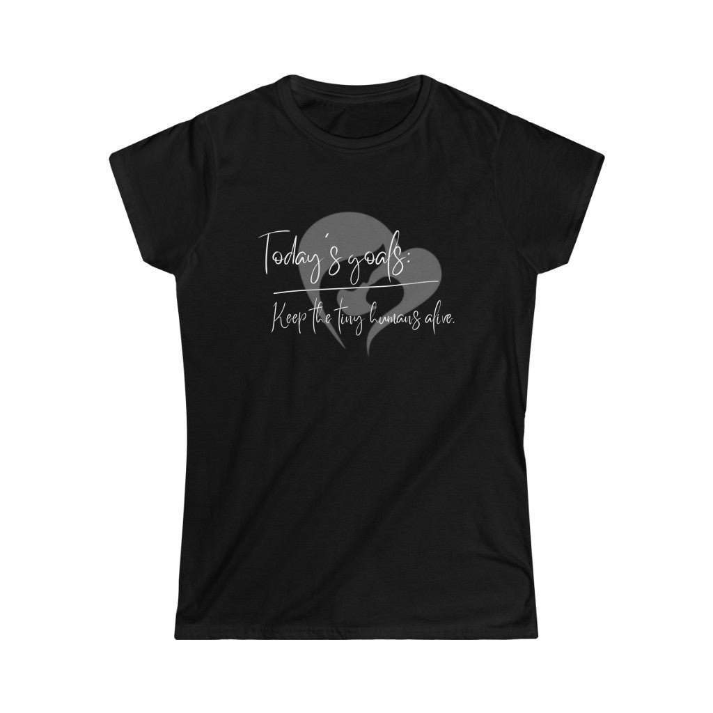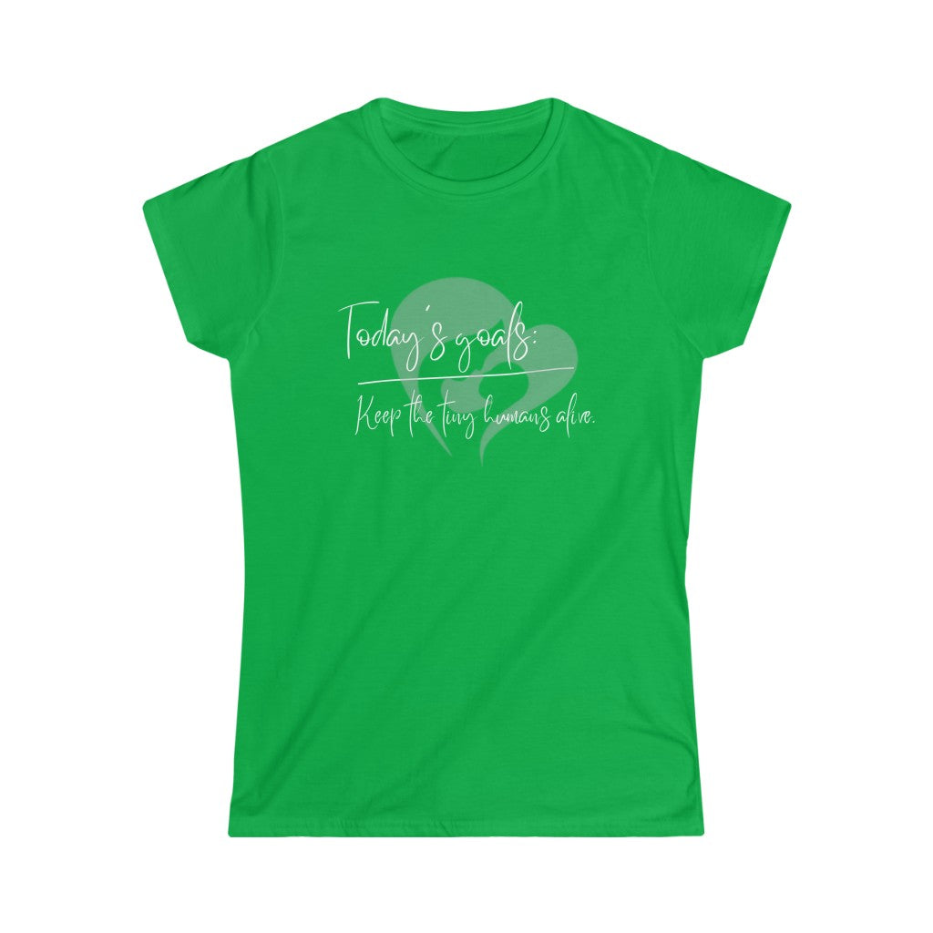 Todays Goal: keep the tiny humans alive. That’s really all we can hope for sometimes. This shirt is a more feminine take on the classic tee. The sleeves are shortened to reveal some shoulder. The fabric is a blend of cotton and polyester, and the garment is semi-fitted to show off your curves. It runs true to size.